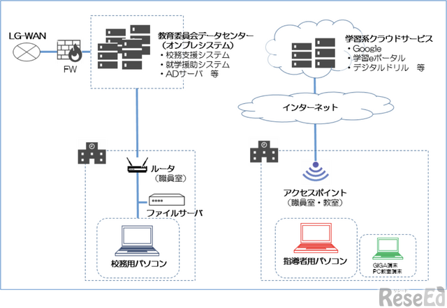 福岡市の再構築前のネットワーク環境(提供:福岡市教育委員会)