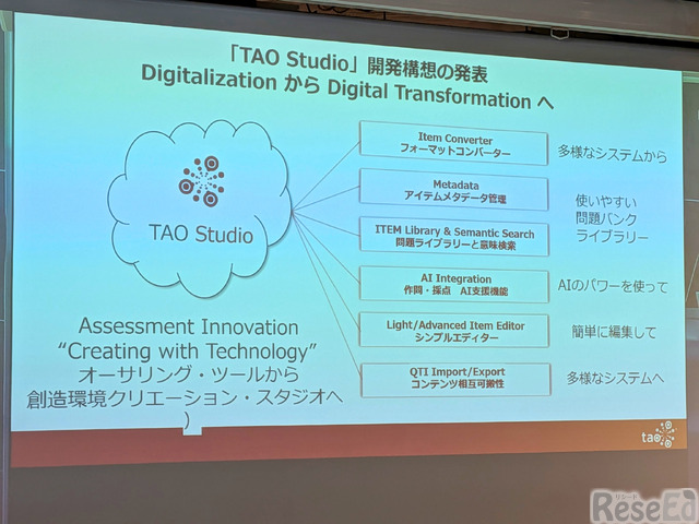 会見では、2026年9月に提供開始予定の新たなオーサリングツール「TAO Studio」についても発表された。「単なるデジタル化から、デジタルトランスフォーメーション(DX)へ」と町田氏が語るこの新環境は、従来の問題作成ツールとは一線を画す「クリエイション・スタジオ」として位置付けられている。