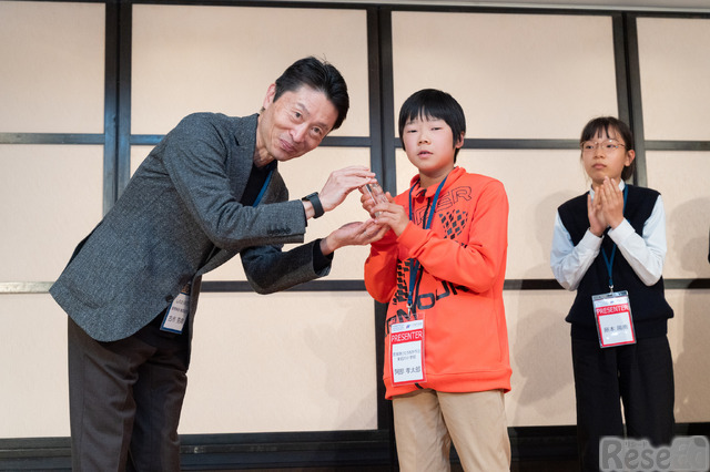 表彰式では、受賞者と助成金額が発表された。小・中学生からは計5名が受賞。プロトタイプ部門で最終プレゼンテーションを行った中学生2名と、事前に受賞が決定していたアイデア部門の小学生3名が名を連ね、その豊かな発想が高く評価された。