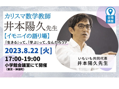 小学館は2023年8月22日、カリスマ数学教師の井本陽久先生と語り合う「イモニイの語り場『生きる』って、『学ぶ』って、なんだろう?」を開催する。教員2,000円、学生1,000円。事前申込制。