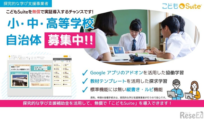 ゼッタリンクスは2023年6月22日、経済産業省「探究的な学び支援補助金2023」の支援事業者として採択が決定したことを発表した。補助金を活用する学校は、Google活用支援ツール「こどもSuite」などを年内無料で利用することができる。応募締切7月31日。