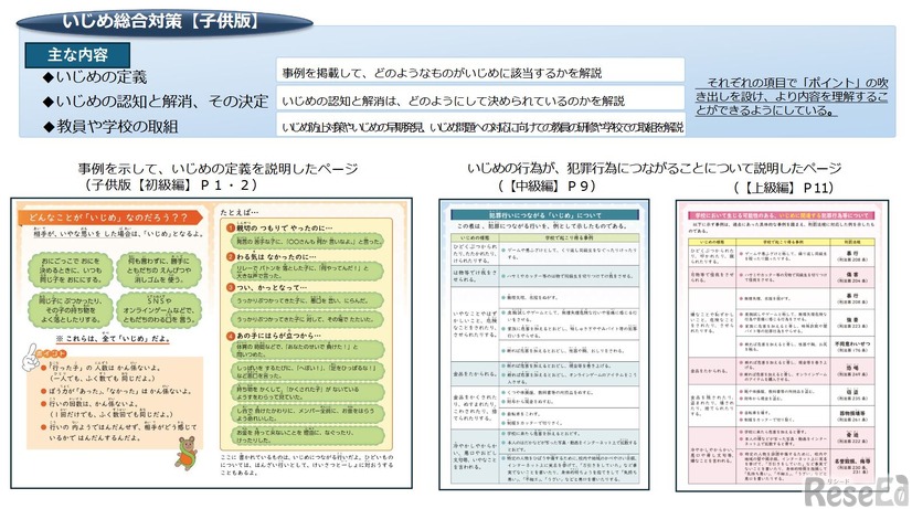 東京都教育委員会は2025年4月28日まで、「いじめ総合対策(第3次)案」について都民から意見を募集している。上巻「学校の取組編」、下巻「実践プログラム編」でいじめ防止の取組みやポイントをまとめている。小中高生向けの子供版もある。意見は、郵送またはWebアンケートで提出する。